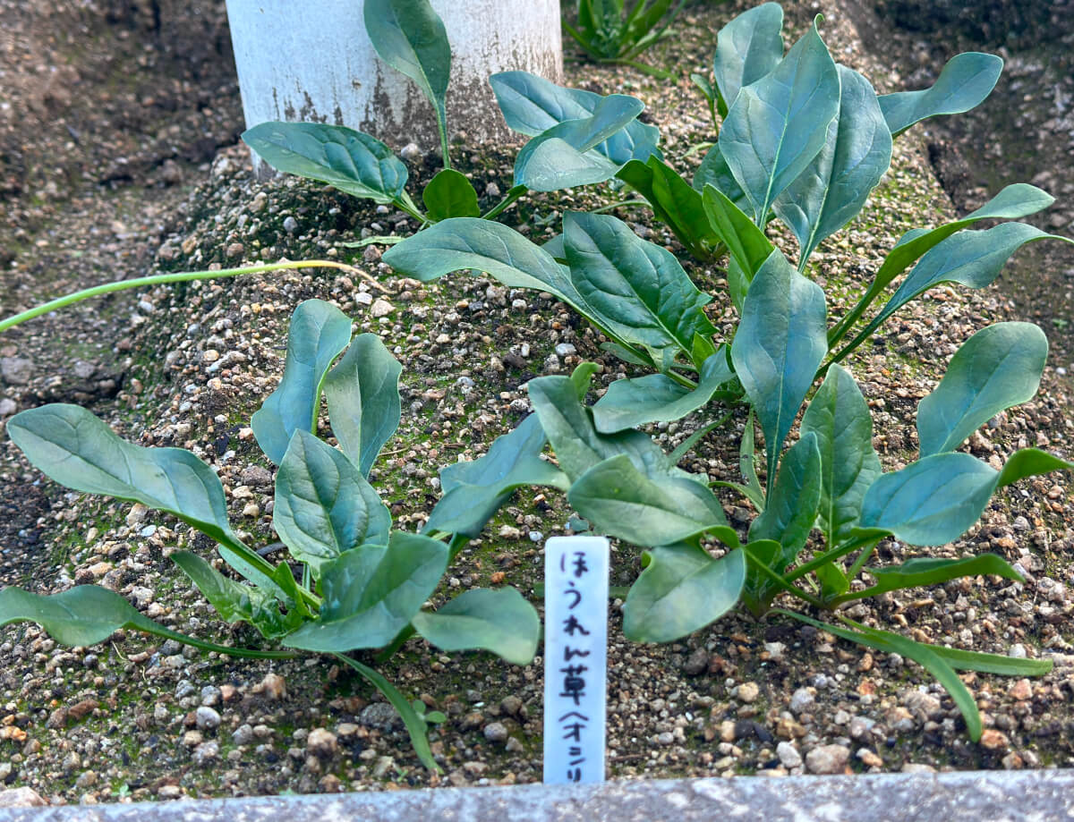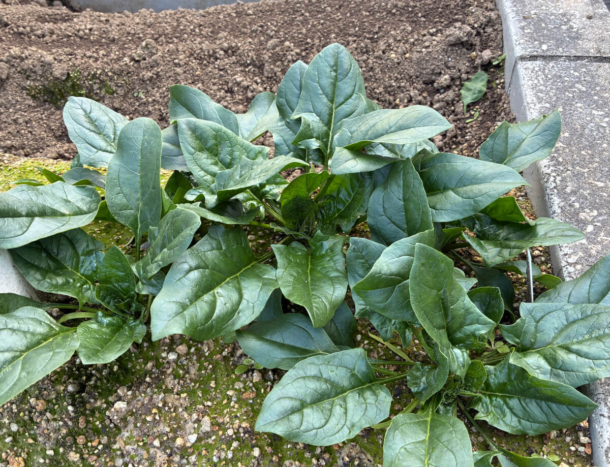 ほうれん草も柱の向こう側は年末に収穫し終えて、手前ももうそろそろ収穫です。