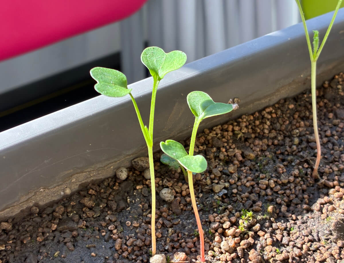 と思い南向きの室内にプランターを置いてハツカダイコンの種を蒔いていました。